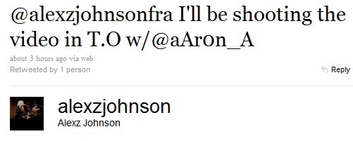For those non-Canadians(I am among them) who may not know who Aaron A. is I decided to do some research and find out. From Alexz’s Holiday Message we know this mystery single is being filmed in Toronto with Aaron A on December 13th. Not much information is on his Twitter page so away we go elsewhere.