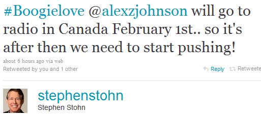 Stephen Stohn tweeted Boogie Love will go to Canadian radio on Feb. 1st. As his tweet shows this is when we really need to go all out with the radio requests! Let’s make this song a hit for her!