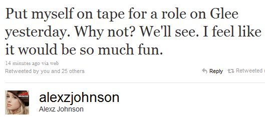Alexz tweeted that she sent in an audition tape for the TV show Glee yesterday.
