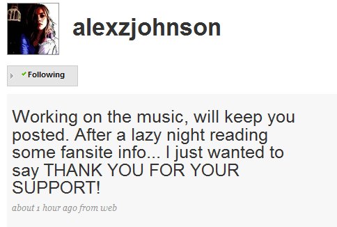 Alexz.net is not affiliated with Alexz Johnson, Watchdog Entertainment, or official in any capacity. Alexz.net is a fan site delivering news and other points of interests to fans. We credit all sources of our news whenever a source can be found. If you see something here that is uncredited and you would like to notify us so it is properly credited please email admin @ alexz.net.