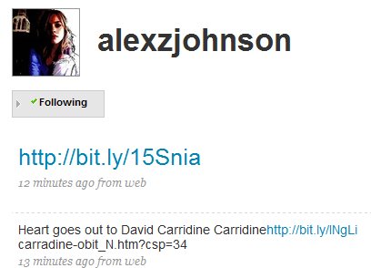 Alexz Twitter About David Carradine