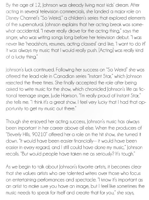 Alexz has a feature article in this month’s Naked Magazine. It is an interesting article with some new information such as Alexz rejected the role on Instant Star three times and was offered a role on 90210 as well. New photographs from Catherine Powell are in this article as well. A physical version of this magazine can be purchased from the site.
