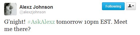 “Ask Alexz” Tomorrow at 10pm Eastern Time